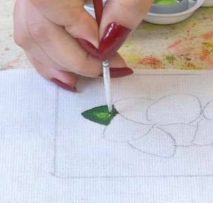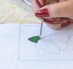 05. Utilizando o pincel 421, pincele o Verde Pinheiro na base da folha.