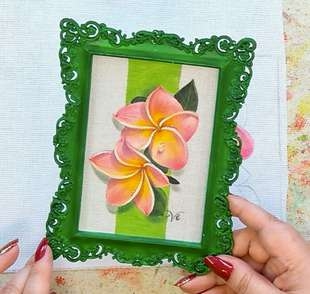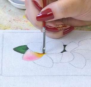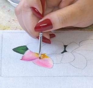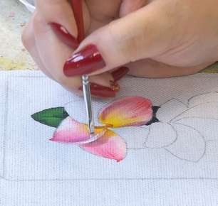 Aprenda a pintar a charmosa flor pluméria sobre o tecido Premium para compor um quadrinho