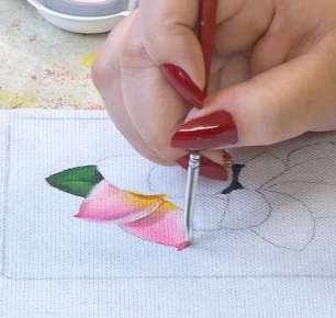 20. Inicie a pintura de outra pétala, aplicando a cor Rostinho de Boneca nas áreas mais claras.