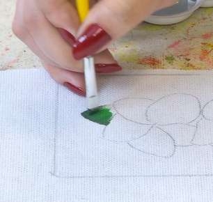 03. Com a tinta Verde Musgo no pincel chato lixado, pincele o centro da folha.